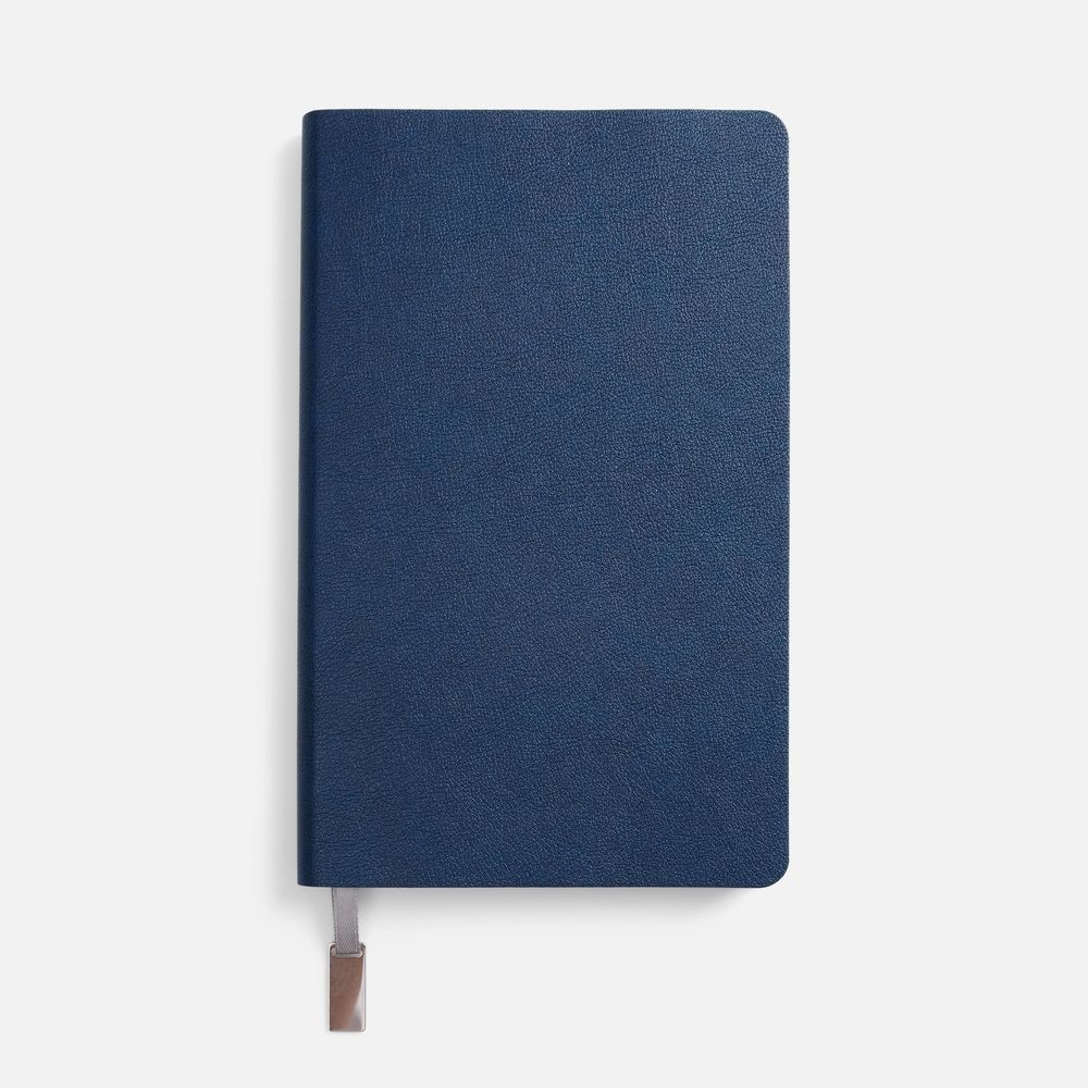 Ежедневник с гибкой обложкой, выполнен из материала Petrus, синий НН, дополнен серым ляссе с металлическим шильдиком.