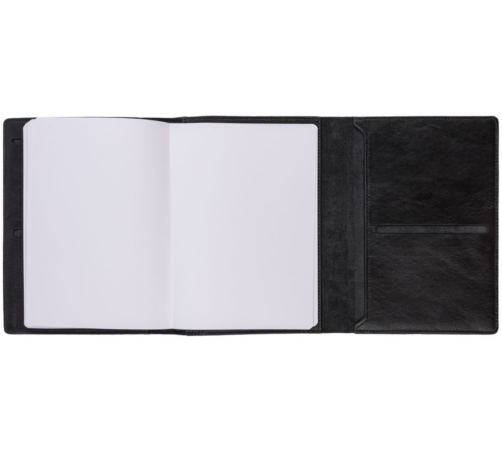 Ежедневник со съемной обложкой-портфолио из натуральной кожи, с капталом, репсовым ляссе и окрашенным срезом обложки в цвет материала.