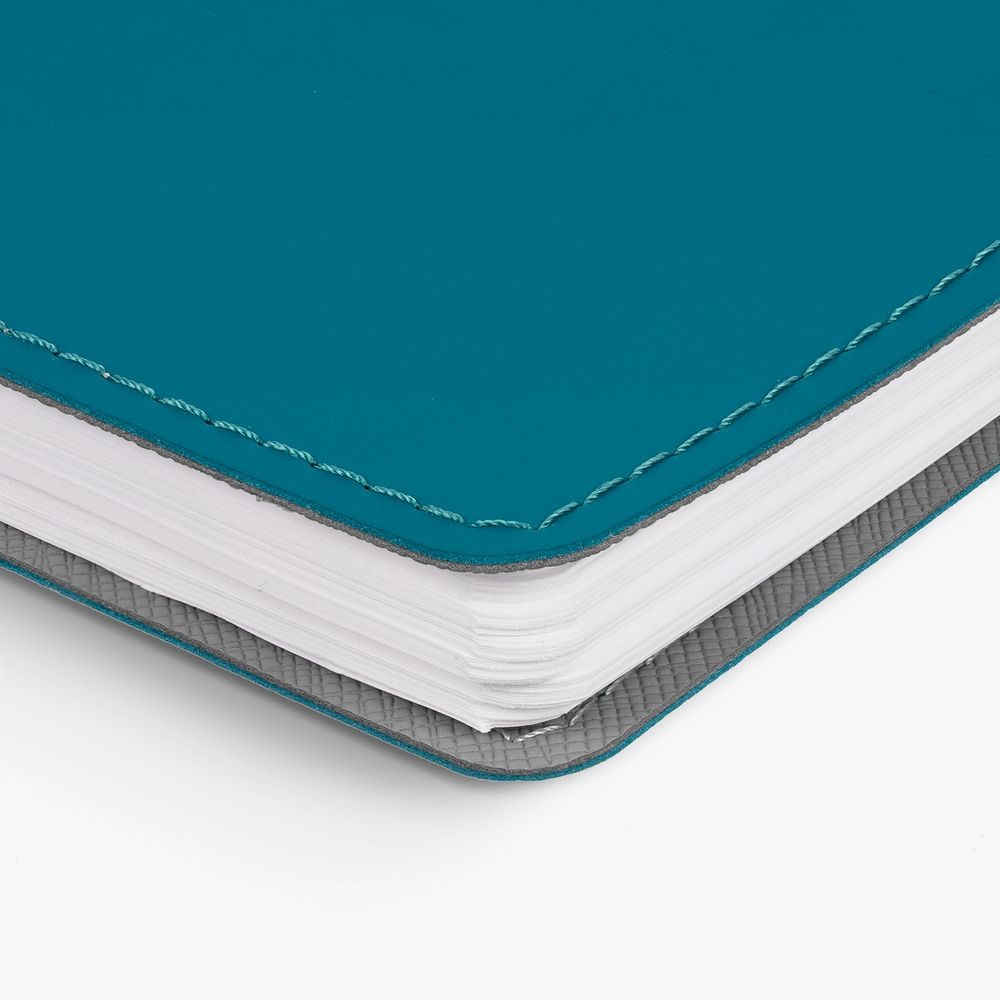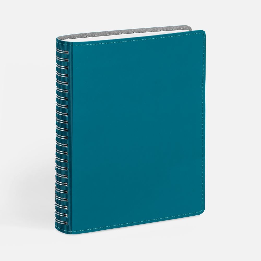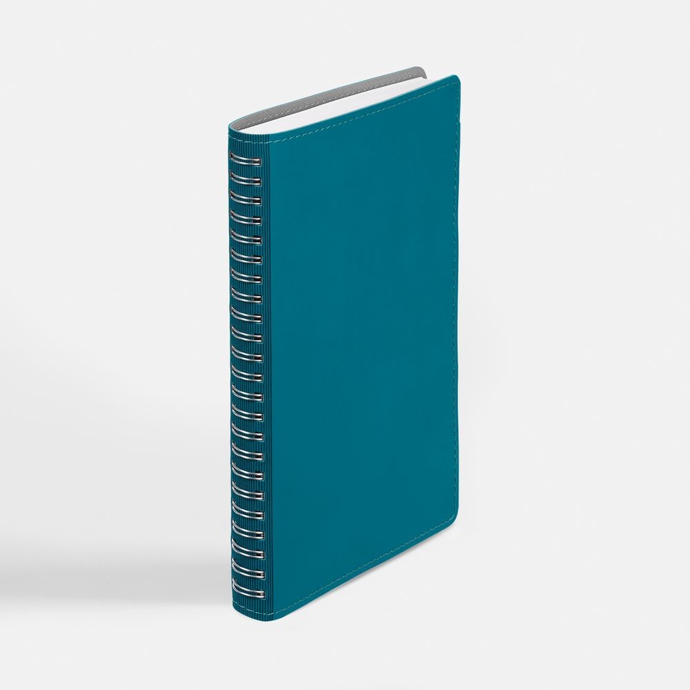 Ежедневник с гибкой обложкой, выполнен из материалов Soft Touch, цвет морской волны II и Nice touch, серый СС.