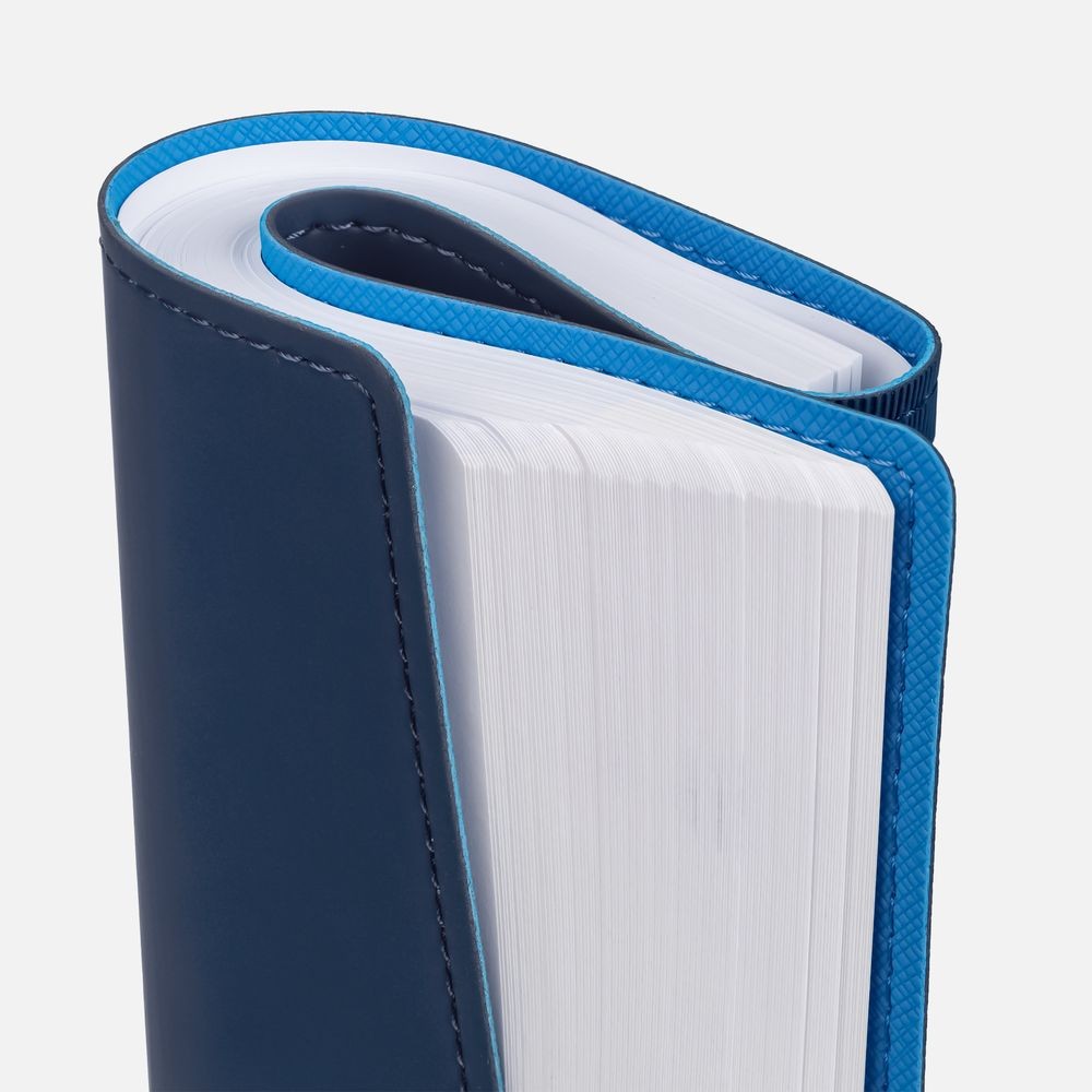 Ежедневник с гибкой обложкой, выполнен из материалов Soft Touch, синий и Nice Touch, голубой.