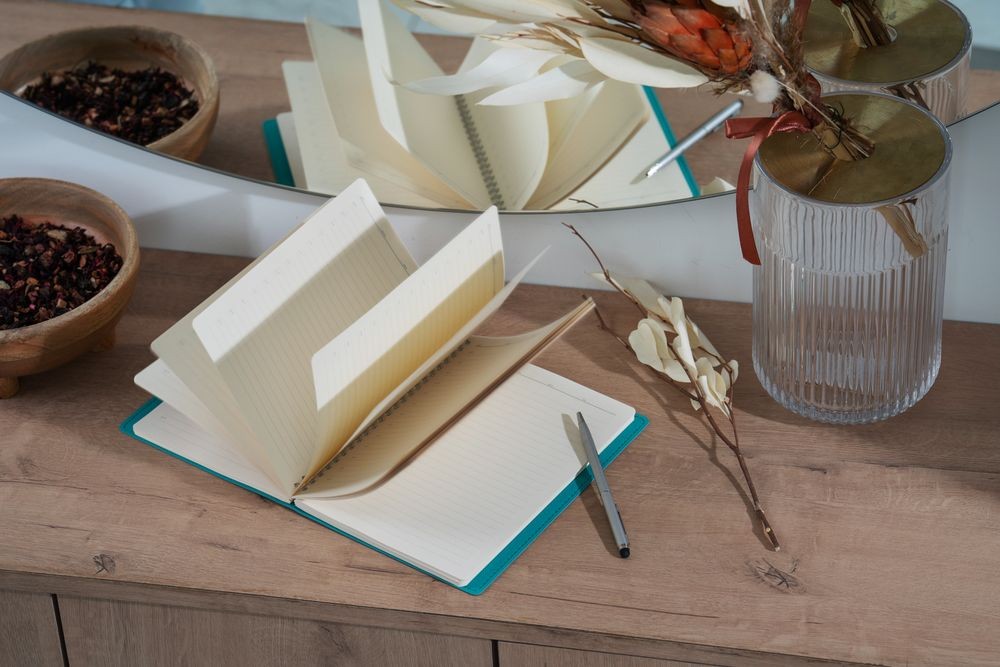 Ежедневник с гибкой обложкой, выполнен из материалов Soft Touch, светло-зеленый YY и Nice Touch, зеленый FF.