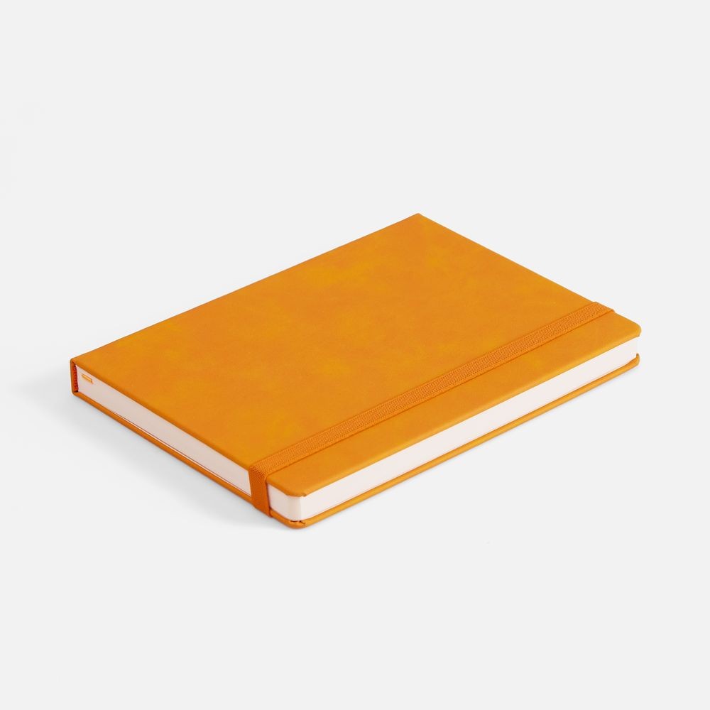 Ежедневник с твердой обложкой, выполнен из материала Nubuck Touch, оранжевый OO, дополнен ляссе в цвет обложки.
