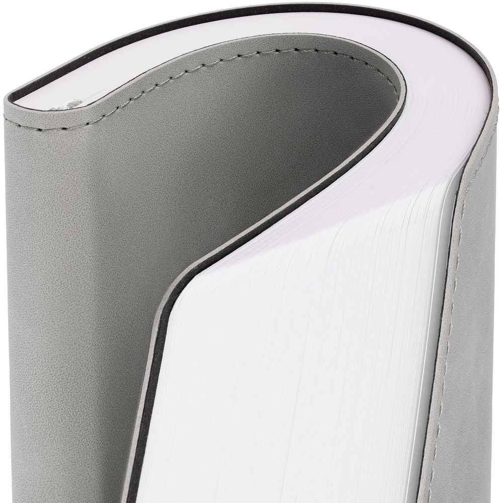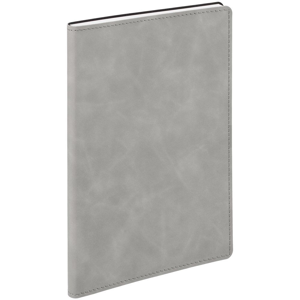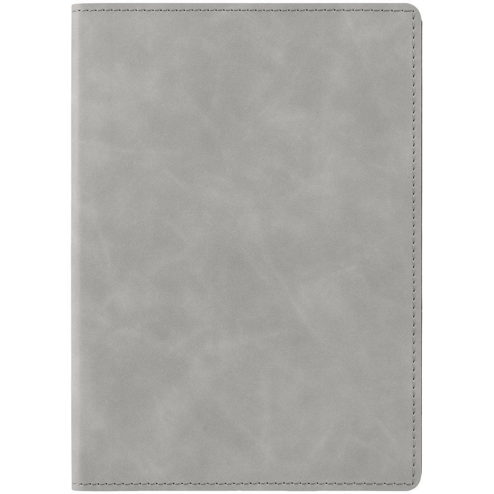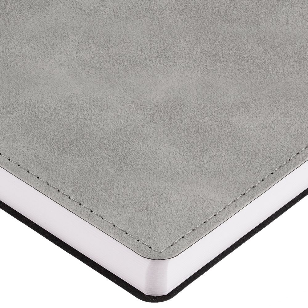 Ежедневник в клетку, с гибкой обложкой, выполнен из материала Nubuck Touch, серый СС, дополнен ляссе темно-серого цвета.