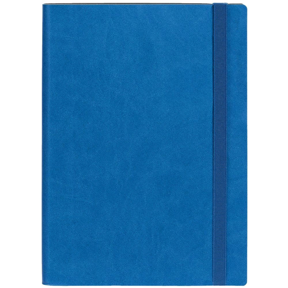 Ежедневник с гибкой обложкой, выполнен из материала Latte, синий НН, дополнен резинкой шириной 1 см, капталом и ляссе синего цвета.