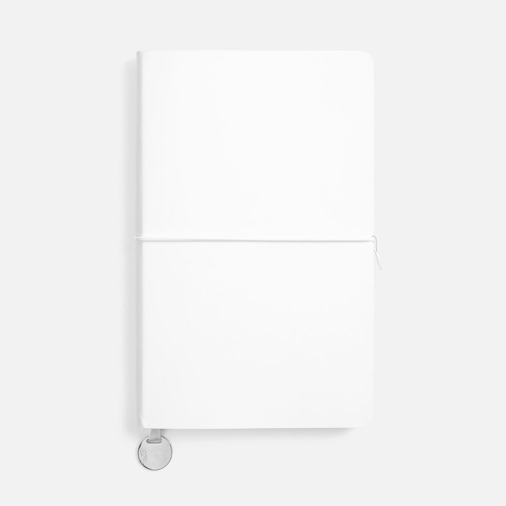 Ежедневник с гибкой обложкой, выполнен из материала Waltz, белый BB, дополнен ляссе в цвет обложки с металлическим шильдом.