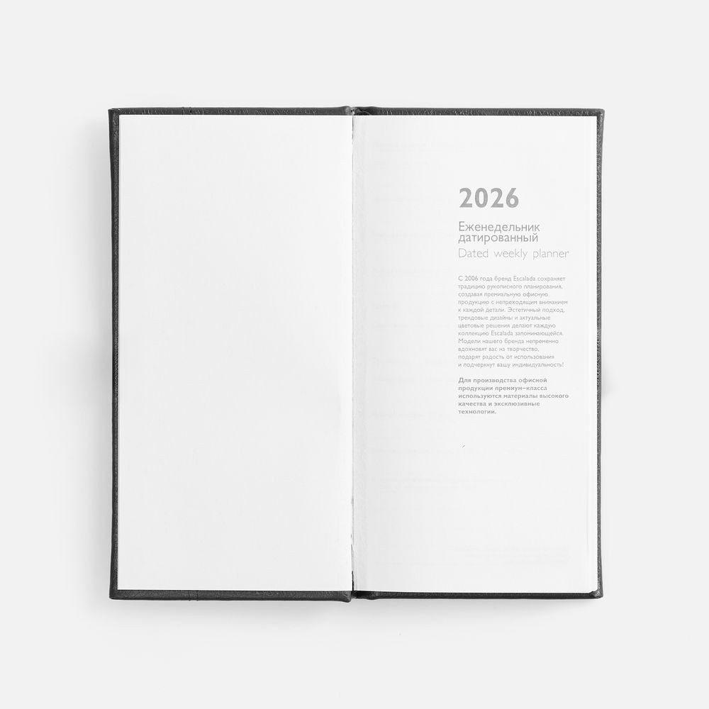 Еженедельник с твердой обложкой с поролоном из искусственной кожи, дополнен декоративной строчкой, капталом и ляссе в цвет.