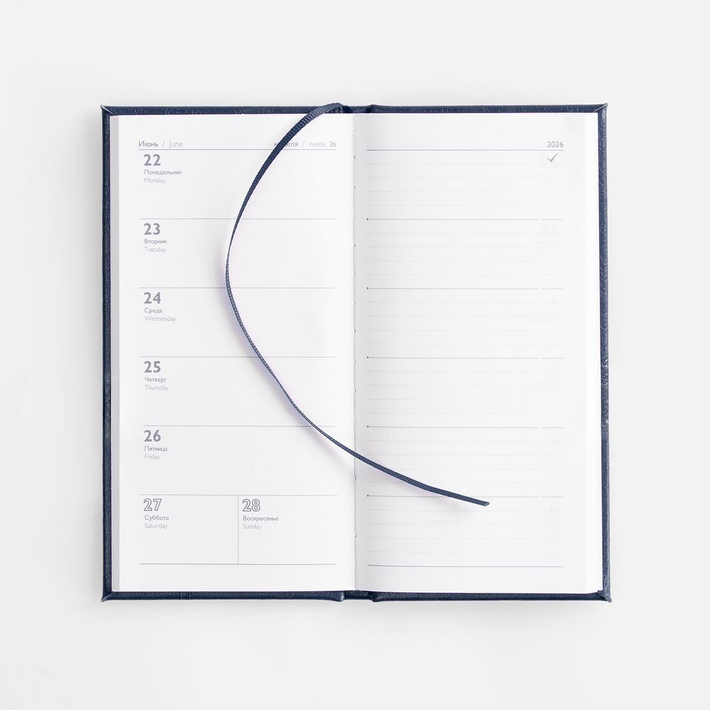 Еженедельник с твердой обложкой с поролоном из искусственной кожи, дополнен декоративной строчкой, капталом и ляссе в цвет.