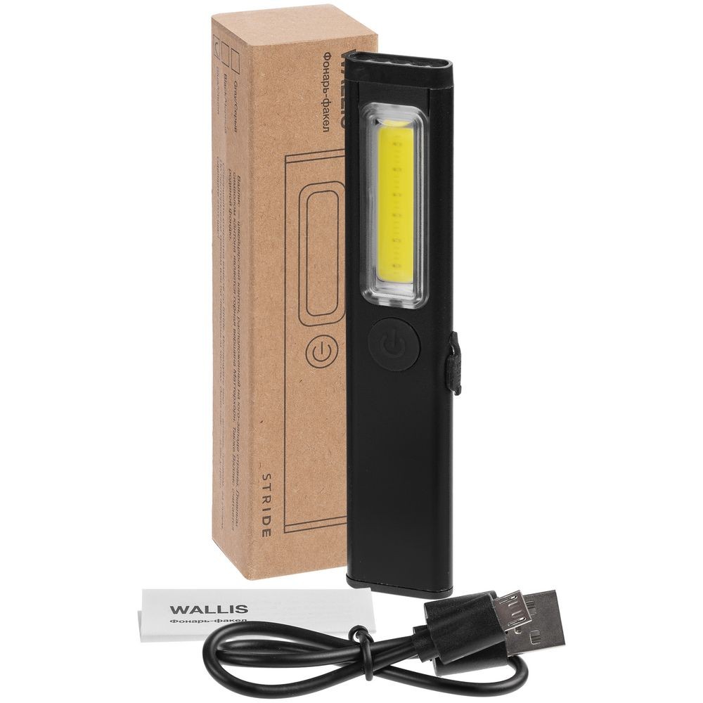 Фонарик-факел аккумуляторный Wallis с магнитом, черный
