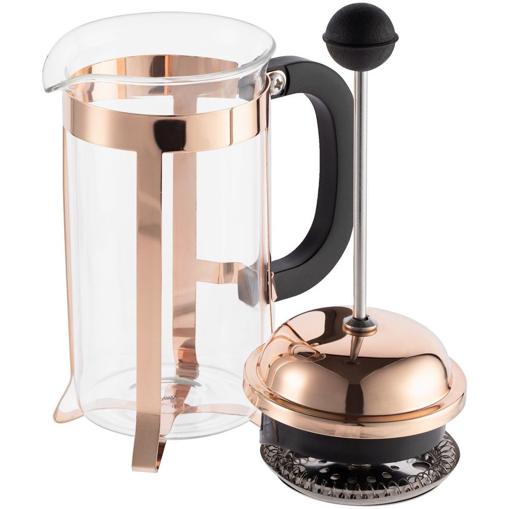 Объема колбы хватит на одну большую кружку или 2 чашки поменьше.Элегантная оправа цвета розового золота защитит колбу от повреждений, а пластиковая ручка не даст обжечься о горячую поверхность. Емкость 350 мл. Поставляется в индивидуальной упаковке.