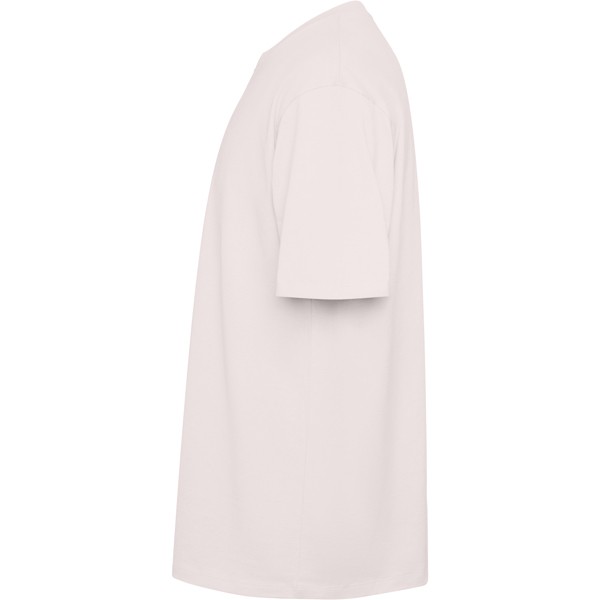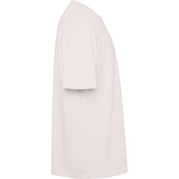 Футболка свободного кроя оверсайз с короткими рукавами. Круглый вырез горловины с отделкой резинкой 2x1 и оверлочными швами в тон. Боковые швы. Широкая двойная строчка на рукавах и по нижнему краю.