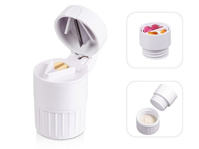 Таблетница сочетает в себе три полезные функции сразу: 1. Резак. Под крышкой установлен специальный резак, который поможет быстро и аккуратно поделить таблетку на 2, 3 и большее количество частей, чтобы точно соблюсти дозировку лекарств; 2. Измельчитель. Незаменим, если необходимо превратить таблетки в порошок; 3. Хранение. Небольшое отделение посередине, в котором можно хранить несколько маленьких таблеток. - резак и измельчитель для таблеток; - отделение для хранения лекарств; - компактный размер.