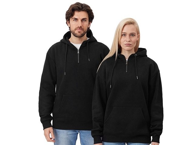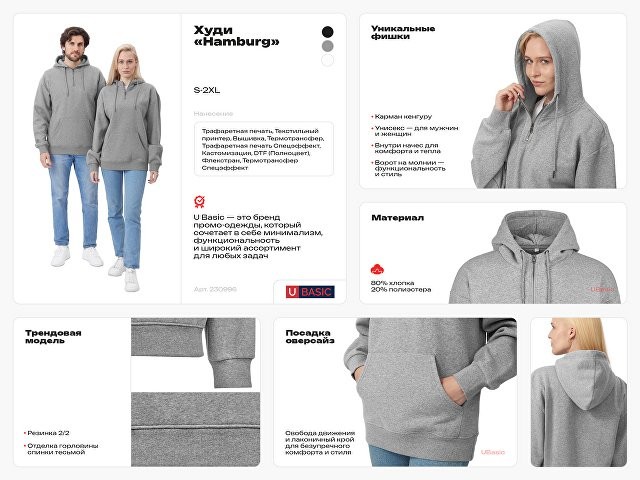 Худи с капюшоном ворот на молнии. Шнур в капюшоне с металлическими наконечниками. Отделка горловины спинки внутри тесьмой, Риб 2х2 по низу изделия и манжетам. Удобный карман кенгуру.