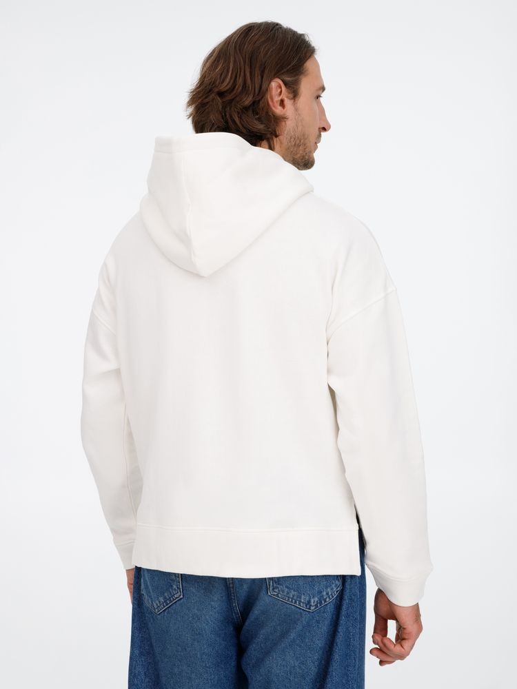 Худи унисекс оверсайз со спущенным плечом и внутренним карманом-кенгуру.