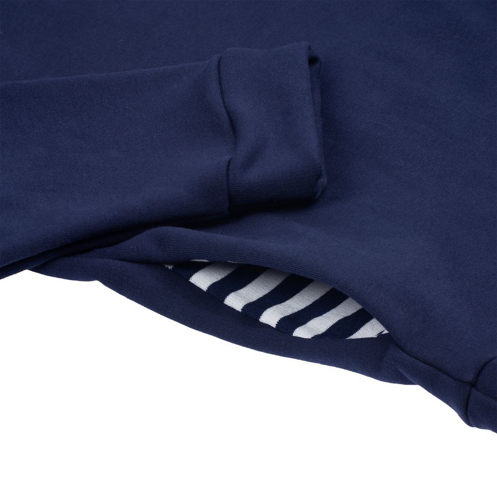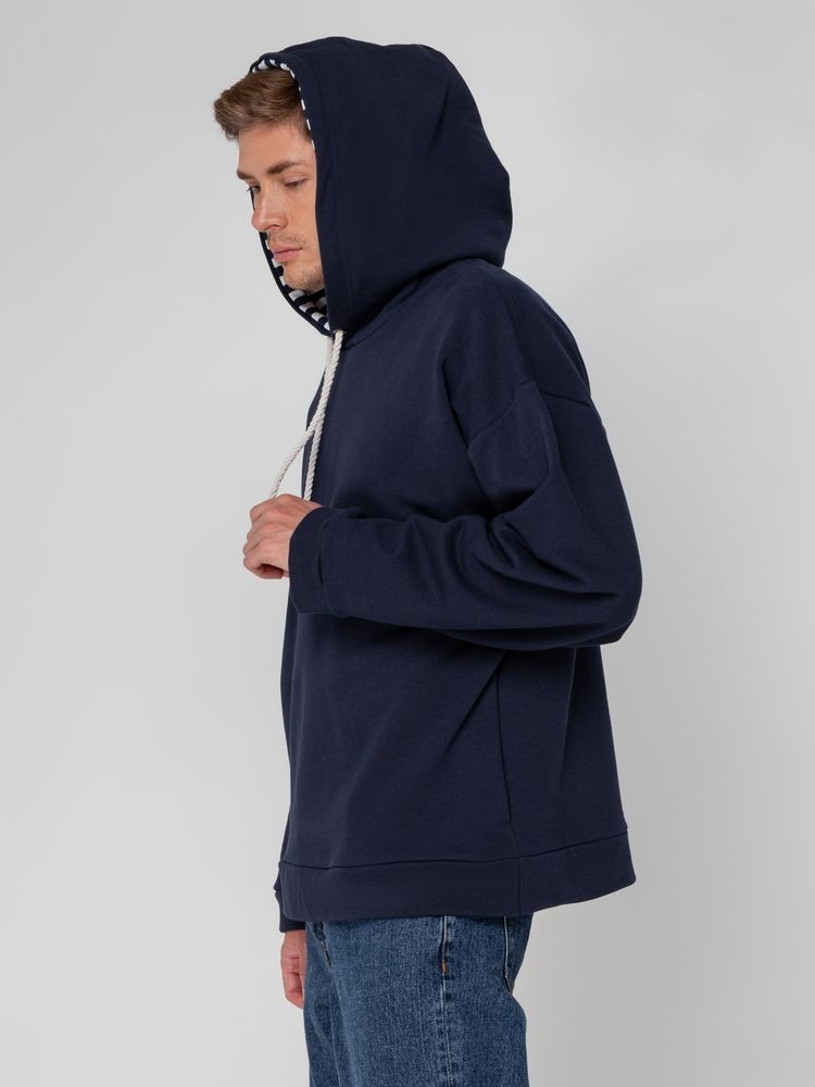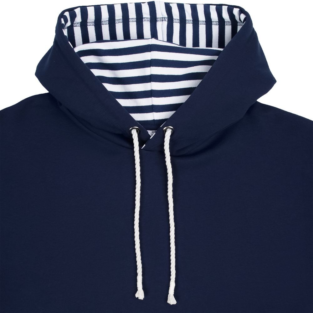 Морской стиль в одежде — это всегда особая атмосфера, пропитанная соленым воздухом, легким бризом и шумом волн. Худи Seamark подарит ощущение свободы и легкости. Его с удовольствием можно носить как в городе, так и во время отдыха на яхте, путешествия на круизном лайнере или плавания на парусной регате. Дополнительный шарм изделию придают хлопковый канат для регулировки капюшона и полосатая подкладка на капюшоне и в карманах. Худи унисекс в морском стиле со спущенным плечом и карманами в боковых швах.