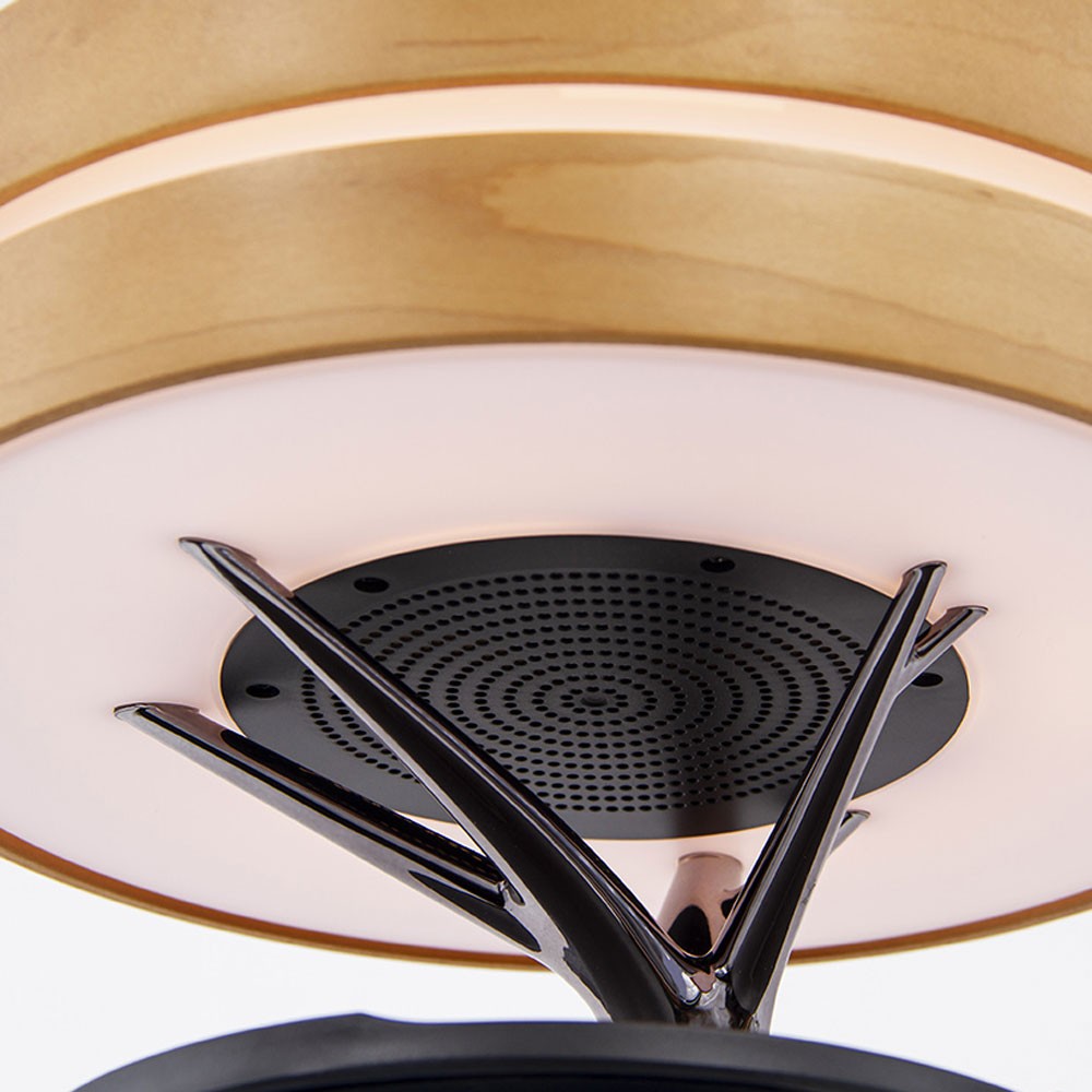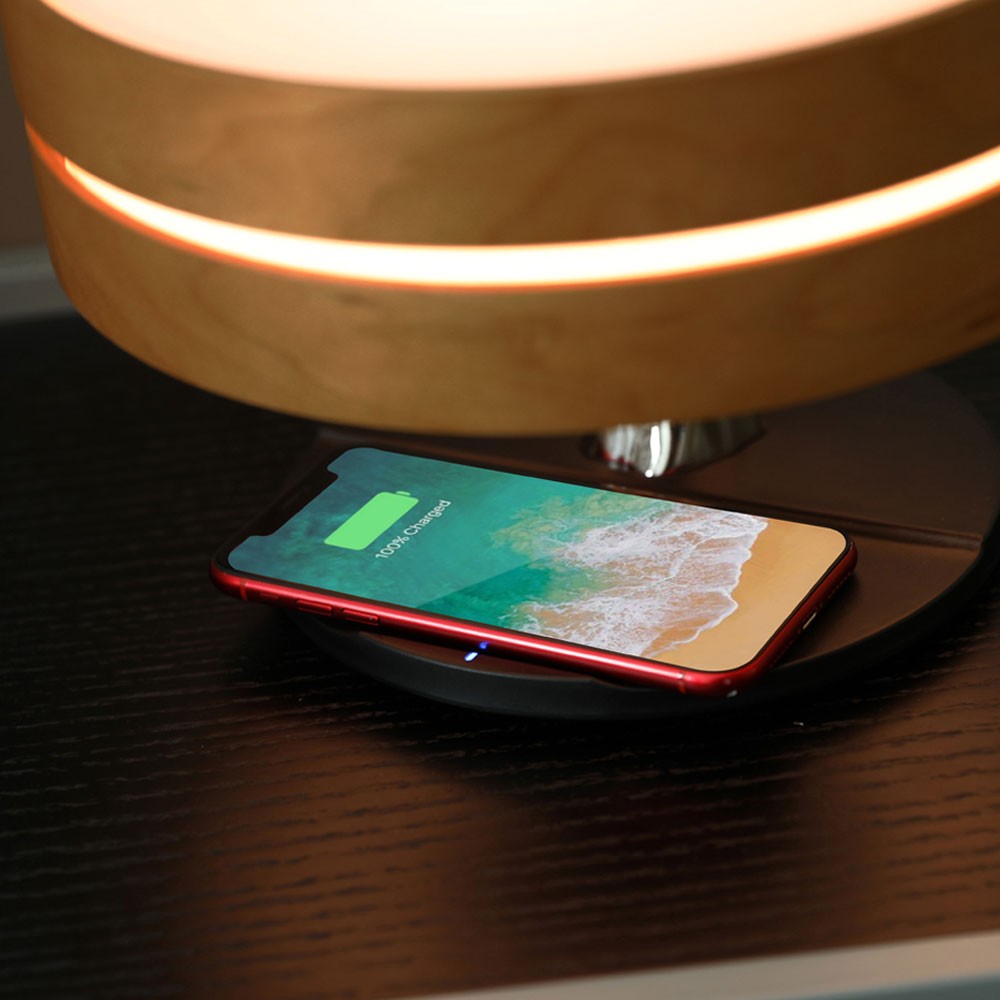 Оригинальная настольная лампа Aronda для современного офиса или стильной квартиры. Дизайнерское сочетание натурального дерева, полированного металла создает уникальный стиль. А многофункциональность устройства позволяет использовать его не только как светильник. Можно слушать музыку или заряжать мобильный телефон при помощи беспроводной зарядки мощностью 10W функции Qi . Тип лампы LED, цветовая температура 2800-3000К, мощность лампы 10W. Питание: 100~240V 50-60Hz.Беспроводная зарядка 5V/2A. Мощность колонки 5Ω/5W*1. Bluetooth MVSILICON 3.0. В комплекте адаптер USB C-type и инструкция. Для работы беспроводной зарядки необходимо подключать устройство к сети через адаптер.