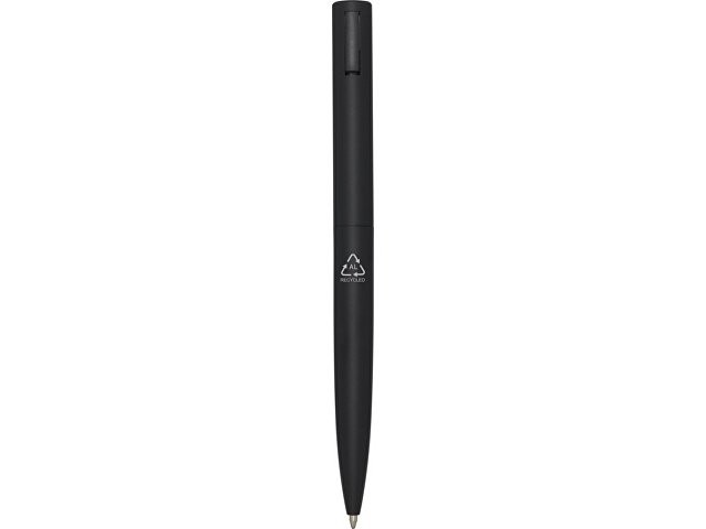 Шариковая ручка, верхняя часть корпуса которой изготовлена из переработанного пластика, а нижняя часть — из переработанного алюминия. Зажим изготовлен из железа. Цвет чернил: черный. Длина непрерывной линии: 1000 метров. Размер пера: 1,0 мм. Recycled Aluminium.