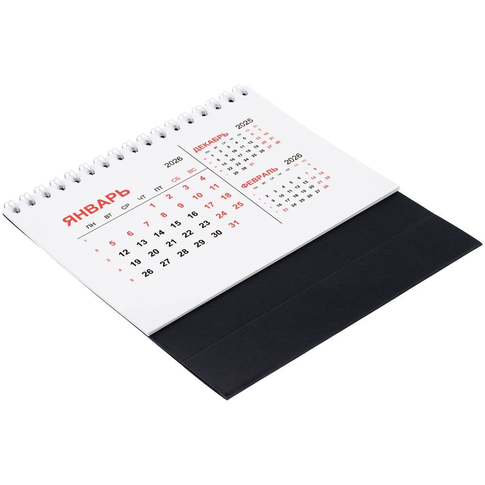 Компактный настольный календарь с датировкой на 2026 год. Основа выполнена из дизайнерской бумаги Sirio Black плотностью 290 г/м². Численник изготовлен из мелованной бумаги плотностью 130 г/м².Производственный календарь на 2026 год подготовлен на основе положений о выходных днях ТК РФ, действующих на момент разработки макета. Постановлением Правительства РФ производственный календарь может быть скорректирован.
