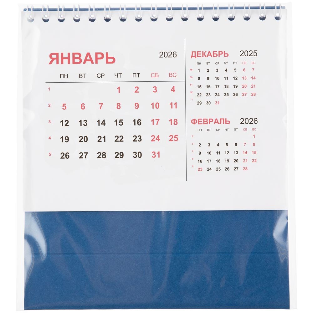 Компактный настольный календарь с датировкой на 2026 год. Основа выполнена из дизайнерской бумаги Macedonia плотностью 260 г/м². Численник изготовлен из мелованной бумаги плотностью 130 г/м².Производственный календарь на 2026 год подготовлен на основе положений о выходных днях ТК РФ, действующих на момент разработки макета. Постановлением Правительства РФ производственный календарь может быть скорректирован.