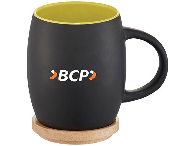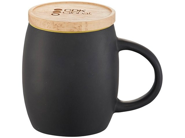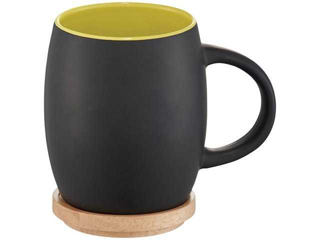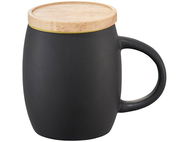 Керамическая чашка Hearth с деревянной крышкой-костером, черный/лайм