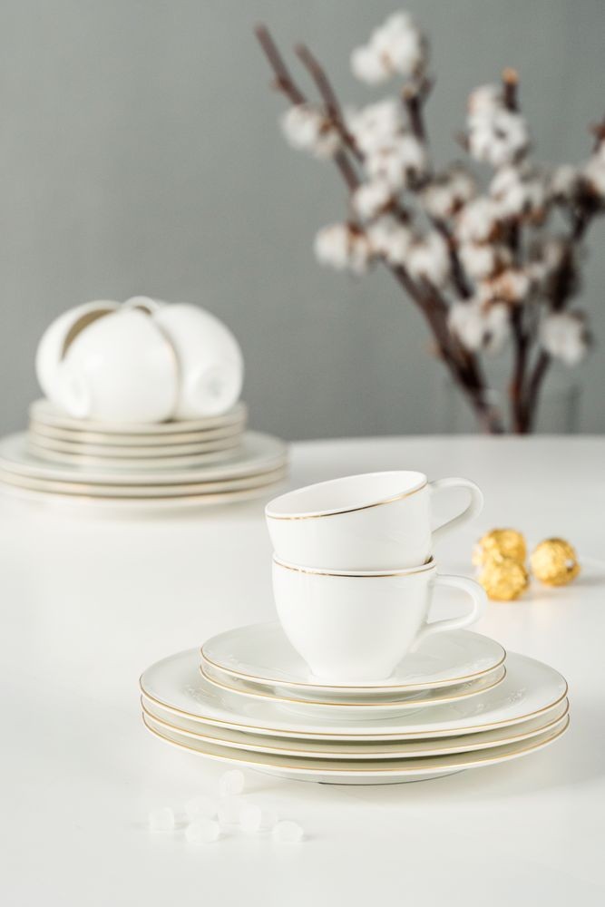 Коллекция Medina Gold от Seltmann —  это легкий, почти невесомый кремовый фарфор с классическим золотым ободом. Качественное исполнение и превосходные материалы позволяют использовать кофейную пару Medina ежедневно и начинать с роскоши и удовольствия каждое утро, а не ждать особого случая.