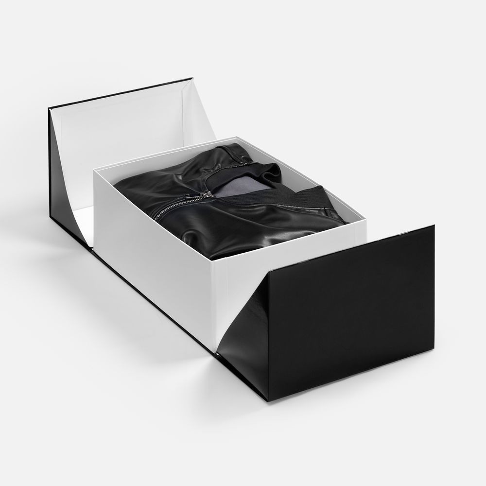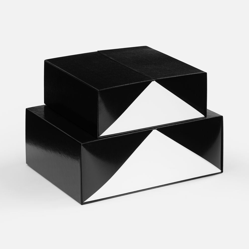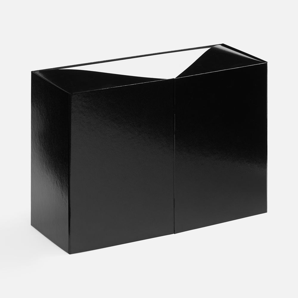 Коробка из переплетного картона 2 мм с оригинальной конструкцией: две симметричные створки открываются, создавая эффектную презентацию содержимого. Складная система на предустановленный двусторонний скотч делает сборку коробки быстрой и интуитивно понятной. Лайнер с полуглянцевым ламинированием устойчив к механическим воздействиям и надолго сохраняет безупречный вид. Поставляется в плоском виде.