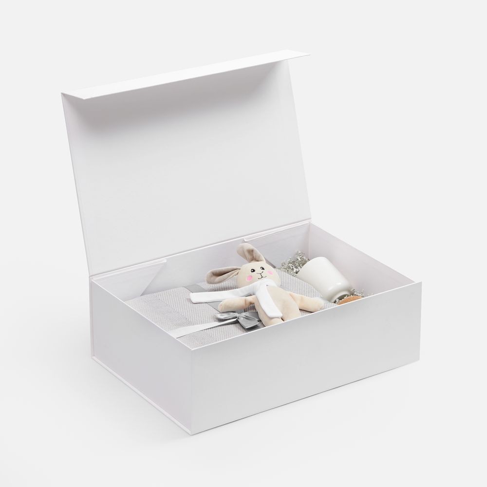 Подарочная коробка RealBig Fold изготовлена из переплетного картона, кашированного дизайнерской бумагой с крышкой на магните. Благодаря самосборной конструкции коробка легко и быстро собирается без дополнительных инструментов. Это идеальное сочетание эстетики и функциональности для упаковки ценных презентов и аксессуаров, где важны и практичность, и декоративность — для самого приятного впечатления от вручения.