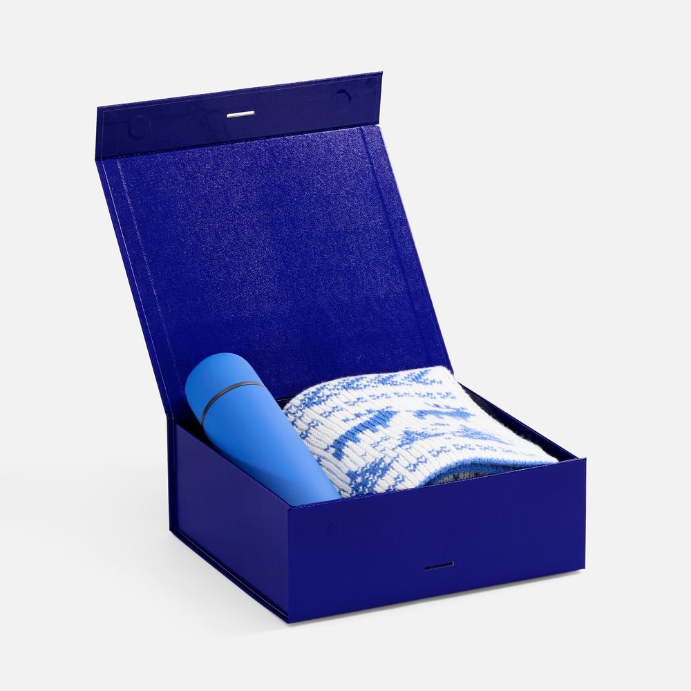 Коробка из переплетного картона с лайнером, ламинированым полуглянцевой текстурной пленкой устойчив к царапинам. Крышка на двух магнитах дополнительно фиксируется репсовой лентой.Толщина картона 2 мм. Поставляется в плоском виде. Сборка осуществляется на скотч.Лента поставляется в сложенном виде и имеет складки на местах сгибов.
