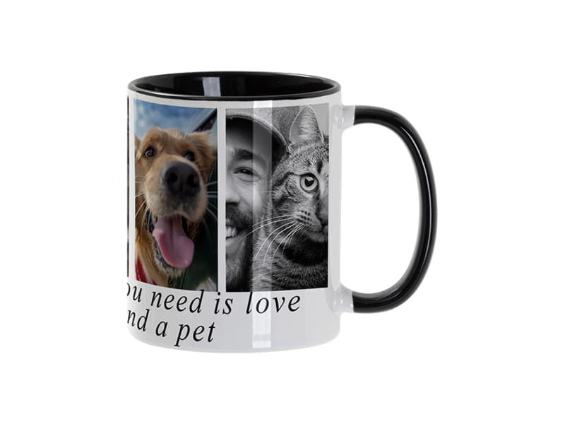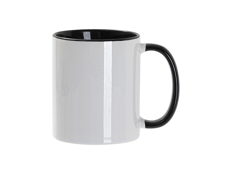Кружка для сублимации, 330 мл, d=82 мм, стандарт А, белая, желтая внутри, желтая ручка, Черный
