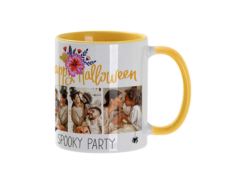 Кружка для сублимации, 330 мл, d=82 мм, стандарт А, белая, желтая внутри, желтая ручка, Жёлтый