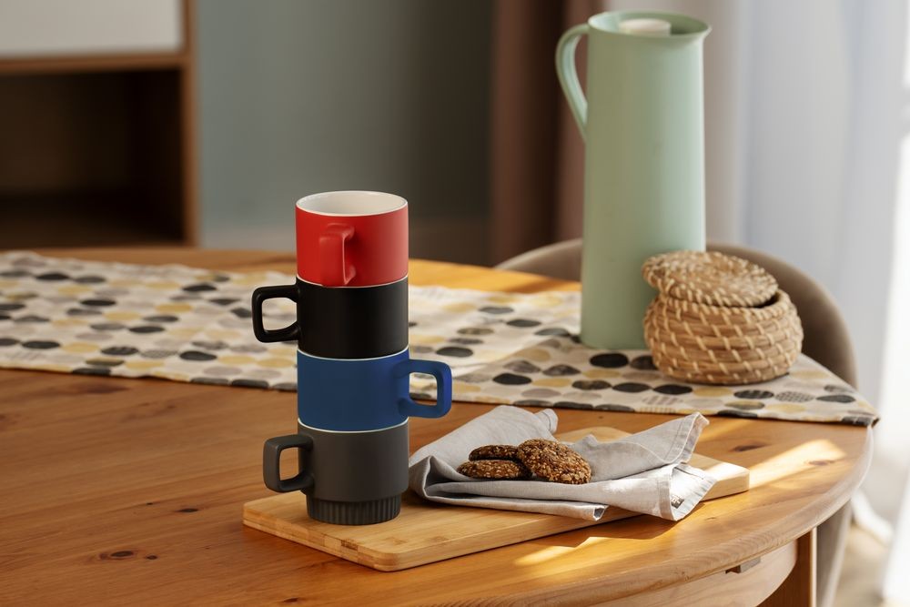 Благодаря оригинальной форме кружка Forma Linea приятно лежит в руке, а еще ее удобно хранить. Кружки легко собираются в аккуратную устойчивую стопку, позволяя экономить место в кухонном шкафчике. Такая многосоставная надежная конструкция станет символом крепкой команды, способной собраться в нужный момент и проявить свою устойчивость.