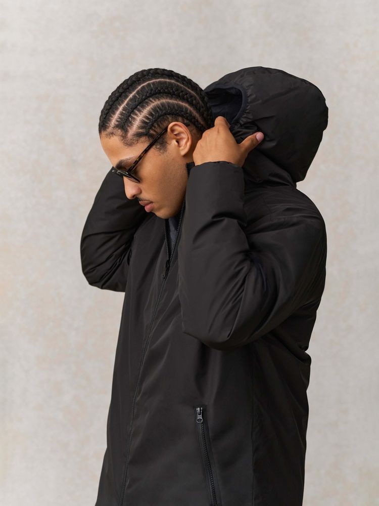 - Отделка эластичной бейкой по низу изделия, на манжетах и по краю капюшона