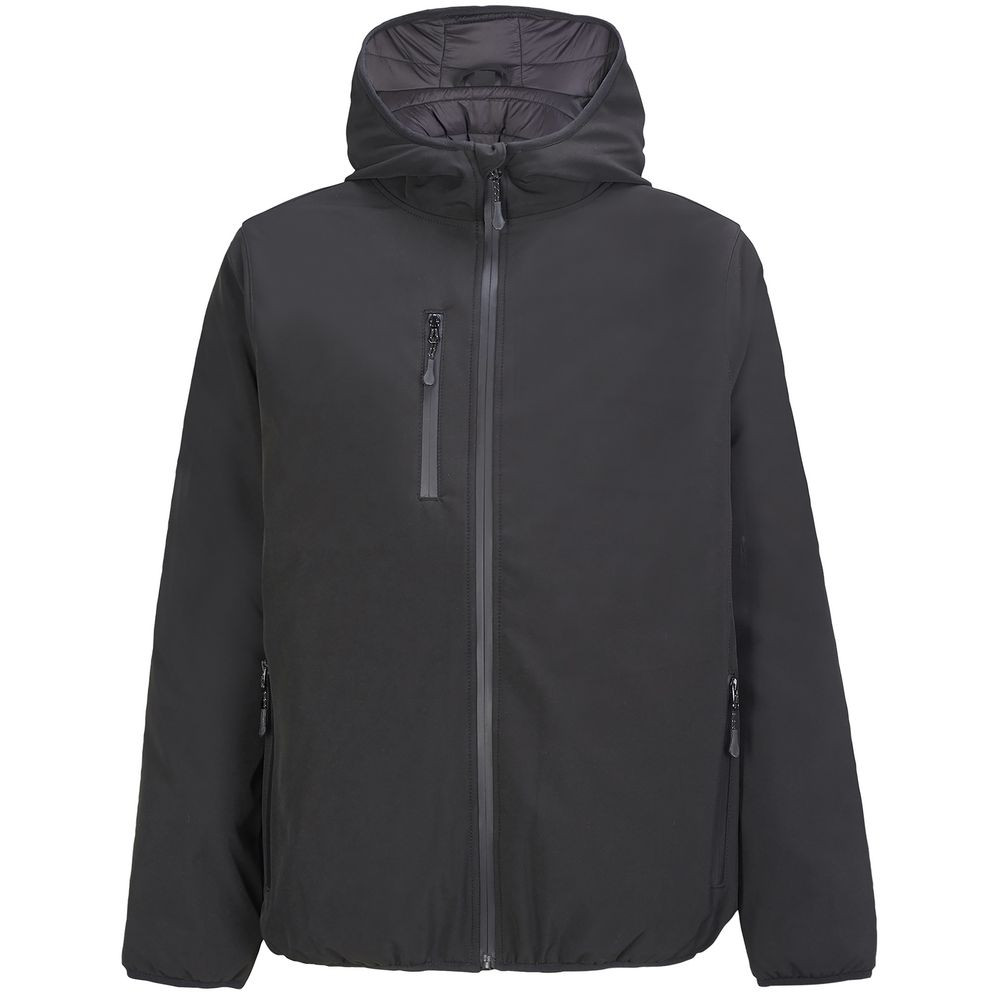 Мужская куртка софтшелл на молнии и с капюшоном.