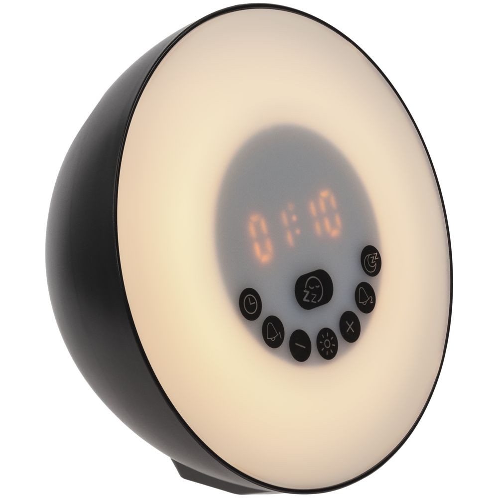 Лампа активируется за некоторое время до настроенного будильника и постепенно увеличивает яркость вплоть до момента, когда вы планируете окончательно проснуться. Эффект мягкого пробуждения можно дополнить звуками природы: шумом волн или пением птиц.