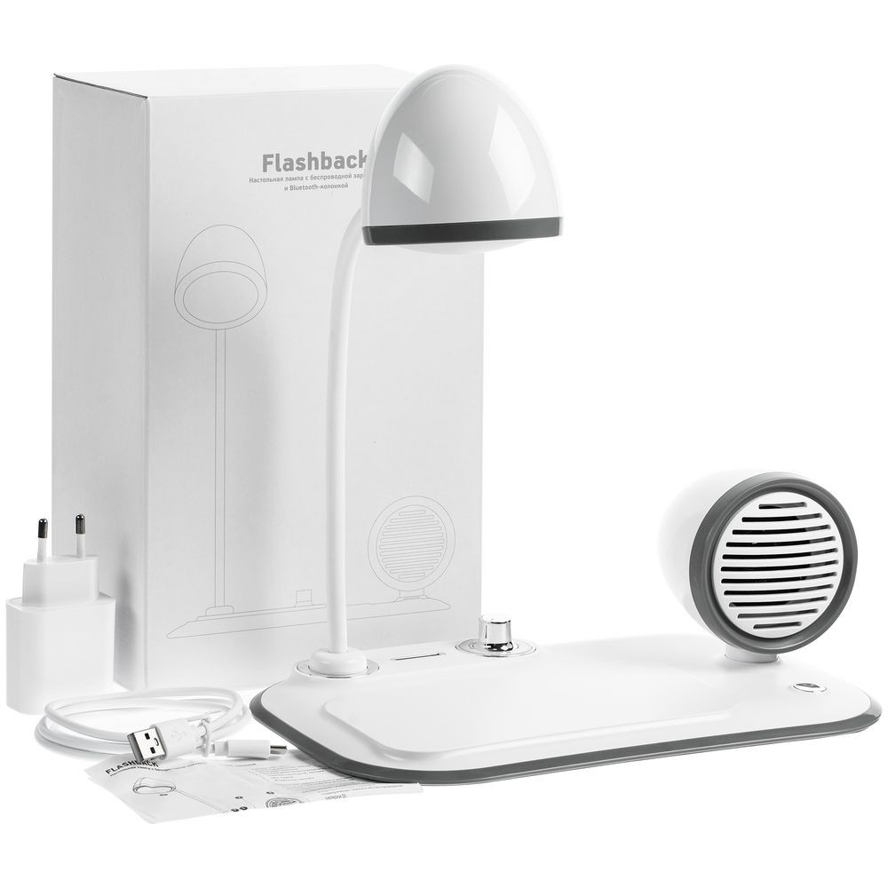 Flashback — это настольная лампа в ретростиле с bluetooth-колонкой и беспроводной зарядкой.