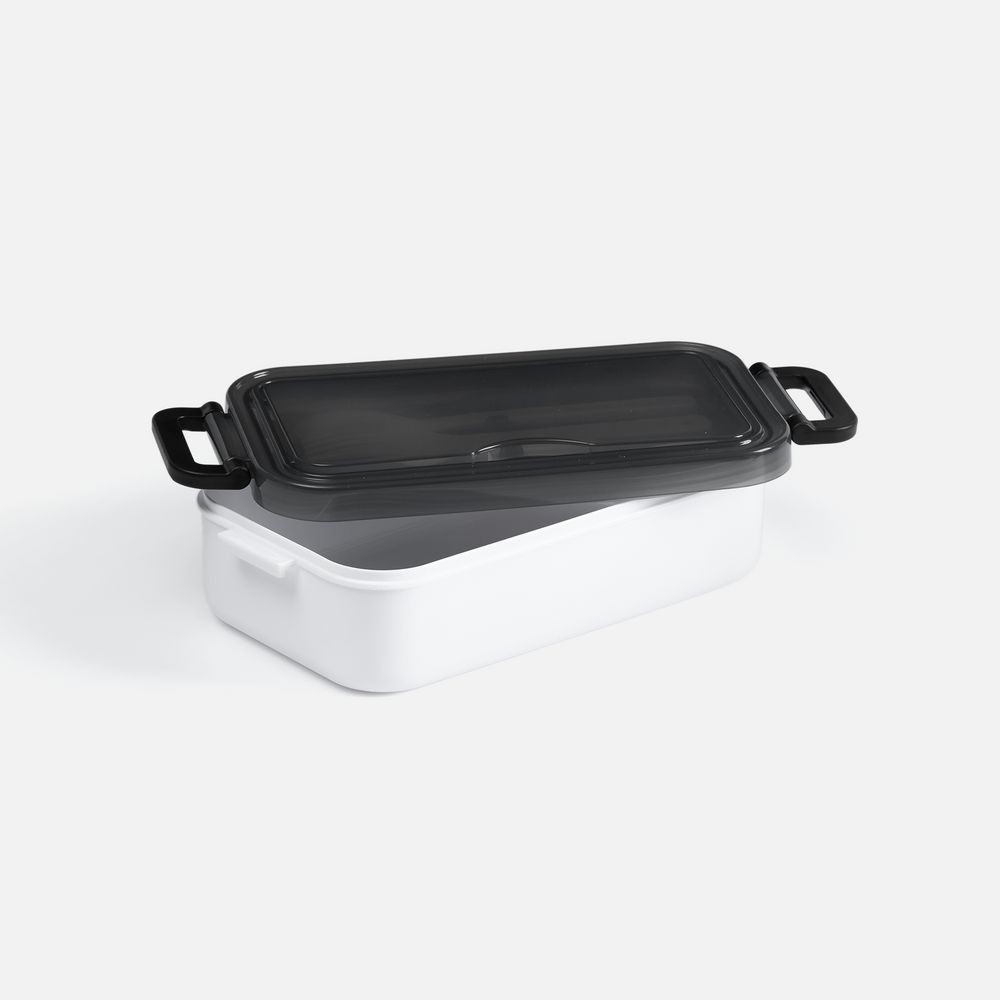 Базовый ланчбокс Pranzo в минималистичном исполнении ненавязчиво напоминает о пользе и простоте сбалансированного питания при любом ритме жизни. Будет незаменим на прогулке или пикнике, также его удобно брать с собой в офис или в школу.Удобная конструкция с крышкой на защелках обеспечивает надежную фиксацию. Специальное отделение под крышкой позволяет хранить столовые приборы, освобождая дополнительное пространство в сумке. Емкость 800 мл.