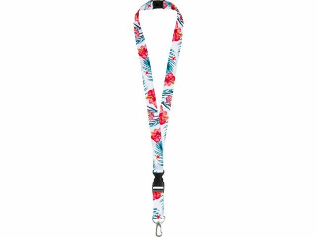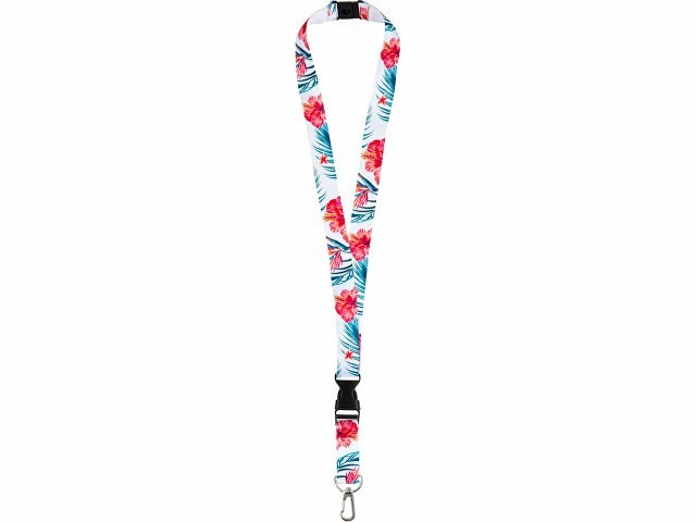 Ланъярд 2 см под сублимацию с карабином, межуровневым замком и замком обрыва, серебристый