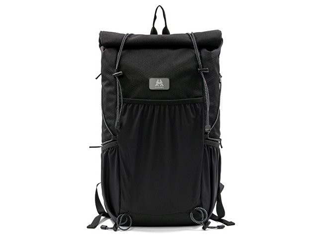 Легкий, элегантный, складывающийся рюкзак вместителен и удобен благодаря системе закрытия основного отделения roll-top, наличию трех наружных карманов спереди и по бокам из прочной эластичной сетки и внутреннему плотному карману для ноутбука до 16". Лямки с эластичными карманами для карт, телефона и других мелочей фиксируются на груди пряжкой, которую можно отрегулировать по высоте под ваш рост. Эластичные фиксирующие шнурки имеют светоотражающее нанесение, что обеспечивает дополнительную защиту в темное время суток. Дышащая сетка на спинке обеспечивает удобство и комфорт. На нагрудной пряжке предусмотрен свисток для экстренного случая. Водостойкая ткань верха изготовлена из переработанного пластика, пропитана специальным составом против загрязнения. В комплекте металлический шильд для нанесения вашего логотипа.