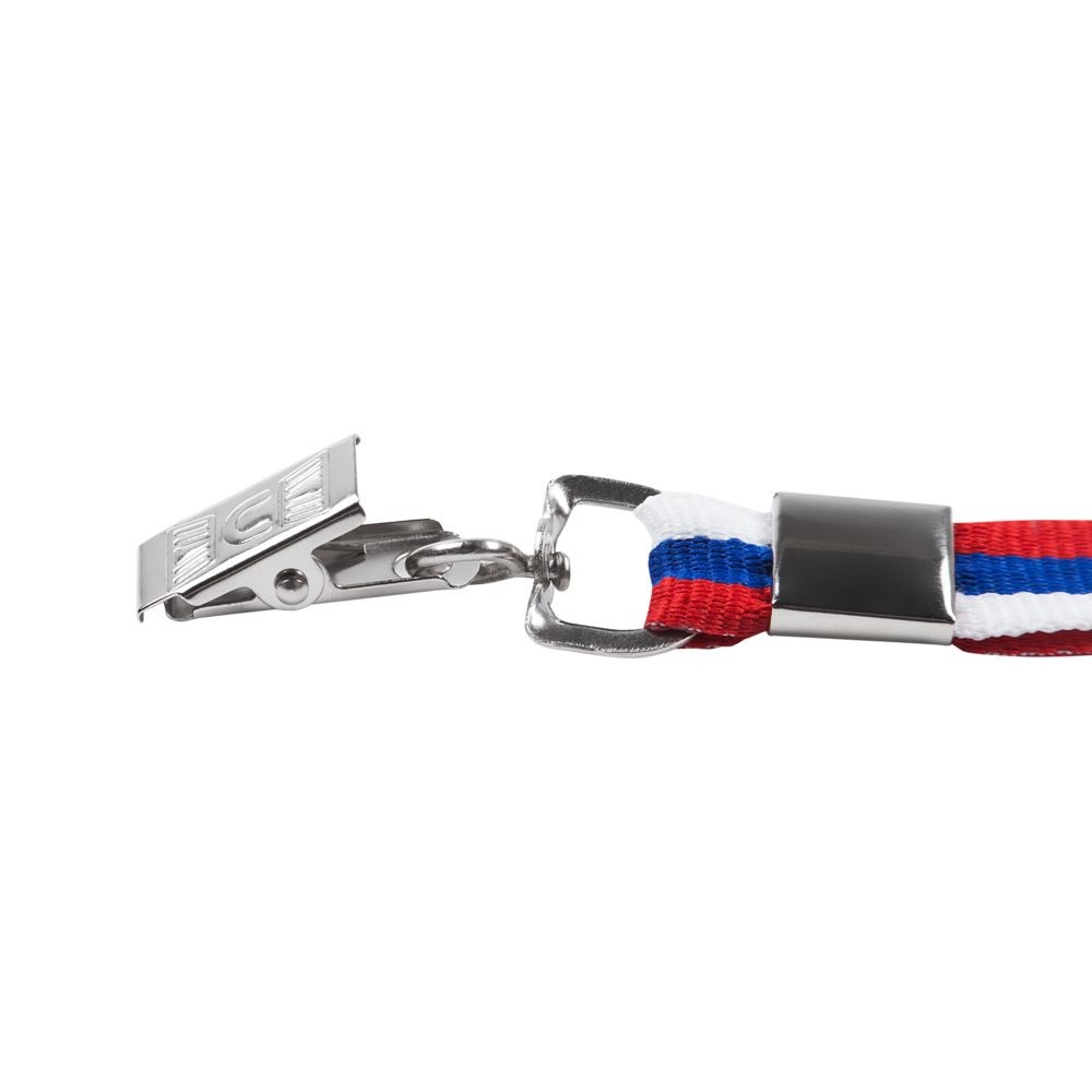 Карман для бейджа продается отдельно.Бейдж крепится к ленте с помощью металлической клипсы.