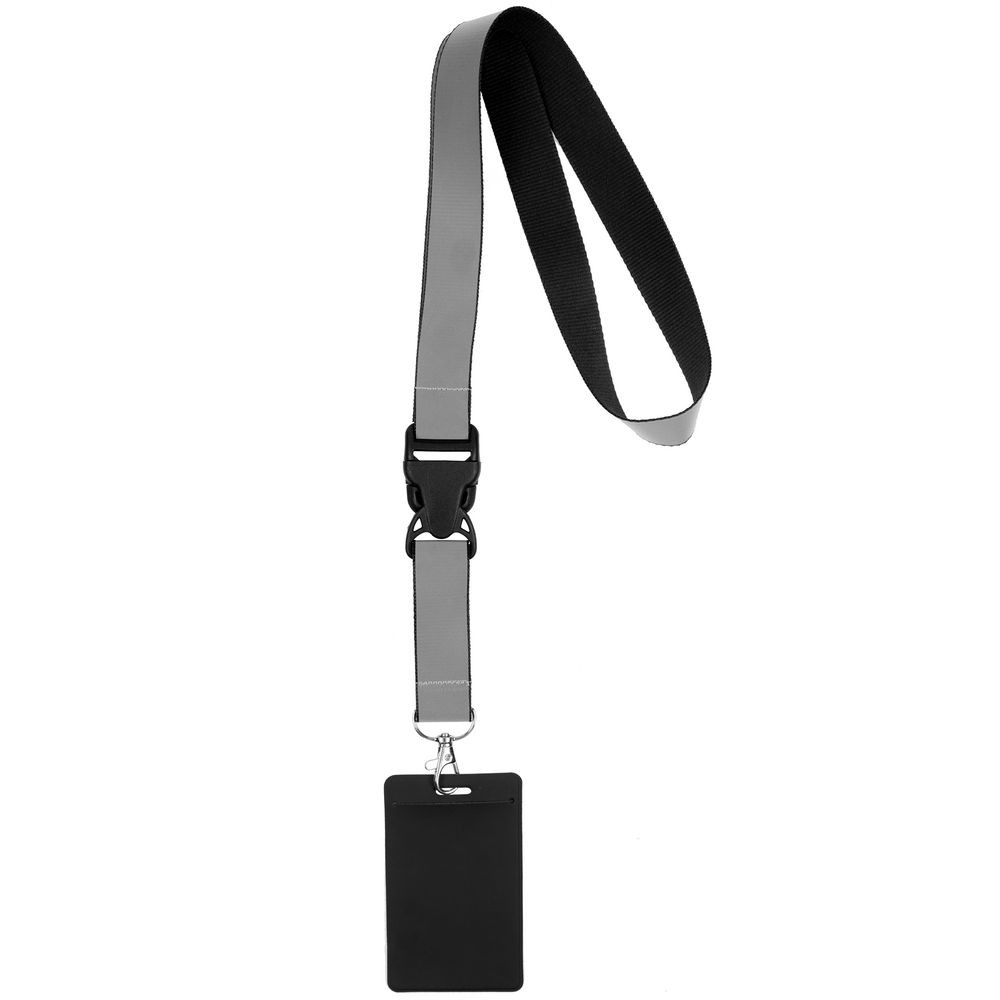 Лента для бейджа или пропуска с карабином и межъярусным замком. Такой замок позволит быстро отстегнуть часть ленты, чтобы приложить интерактивный бейдж или пропуск к считывателю, не снимая ленту через голову.