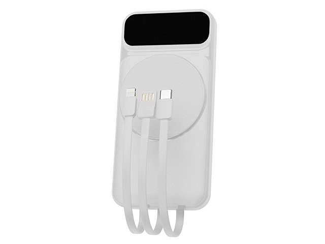 Функциональный и удобный внешний аккумулятор на 10 000 мАч обеспечивает быструю зарядку как по кабелям, так и беспроводным способом, поддерживая современные стандарты скорости. Цифровой дисплей на верхней панели мгновенно показывает точный уровень заряда, а встроенные кабели Lightning, USB-C и входной USB-A устраняют необходимость в дополнительных проводах — всё, что нужно для каждодневного использования, уже есть в самом гаджете. Компактные габариты, сопоставимые с размером смартфона, делают устройство идеальным для путешествий и повседневного использования. Сильные магниты гарантируют надёжное крепление при беспроводной зарядке. В комплекте есть силиконовая накладка: перед использованием удалите защитный стикер и прикрепите её к корпусу. - Встроенные кабели (Lightning, USB-C, USB-A) — не нужно искать дополнительные кабели: зарядка других устройств и подзарядка аккумулятора происходят через встроенные кабели. - Сильные магниты - Цифровой дисплей уровня заряда и статуса зарядки - Функции быстрой проводной и беспроводной зарядки - Упаковка с удобным и быстрым открытием