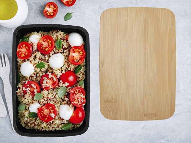 Пищевой контейнер Mangi изготовлен из переработанного пластика и имеет емкость 750 мл. Он оснащен бамбуковой крышкой и эластичной лентой, которая удерживает крышку на месте, гарантируя, что содержимое останется свежим. GRS certified recycled plastic, FSC certified bamboo.