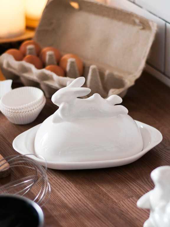 Масленка с изображением кролика из фарфора — это изящное и милое изделие, которое станет ярким акцентом вашей сервировки стола. Выполненная из высококачественного фарфора, она обладает гладкой и прочной поверхностью. На крышке или боковой части масленки изображен очаровательный кролик, что придает ей особую нежность и уют. Размер масленки удобен для хранения и подачи сливочного масла или других мягких намазок. Такой предмет отлично дополнит ваш стол и создаст теплую, праздничную атмосферу, а также станет приятным подарком для любителей красивой посуды и милых деталей интерьера.