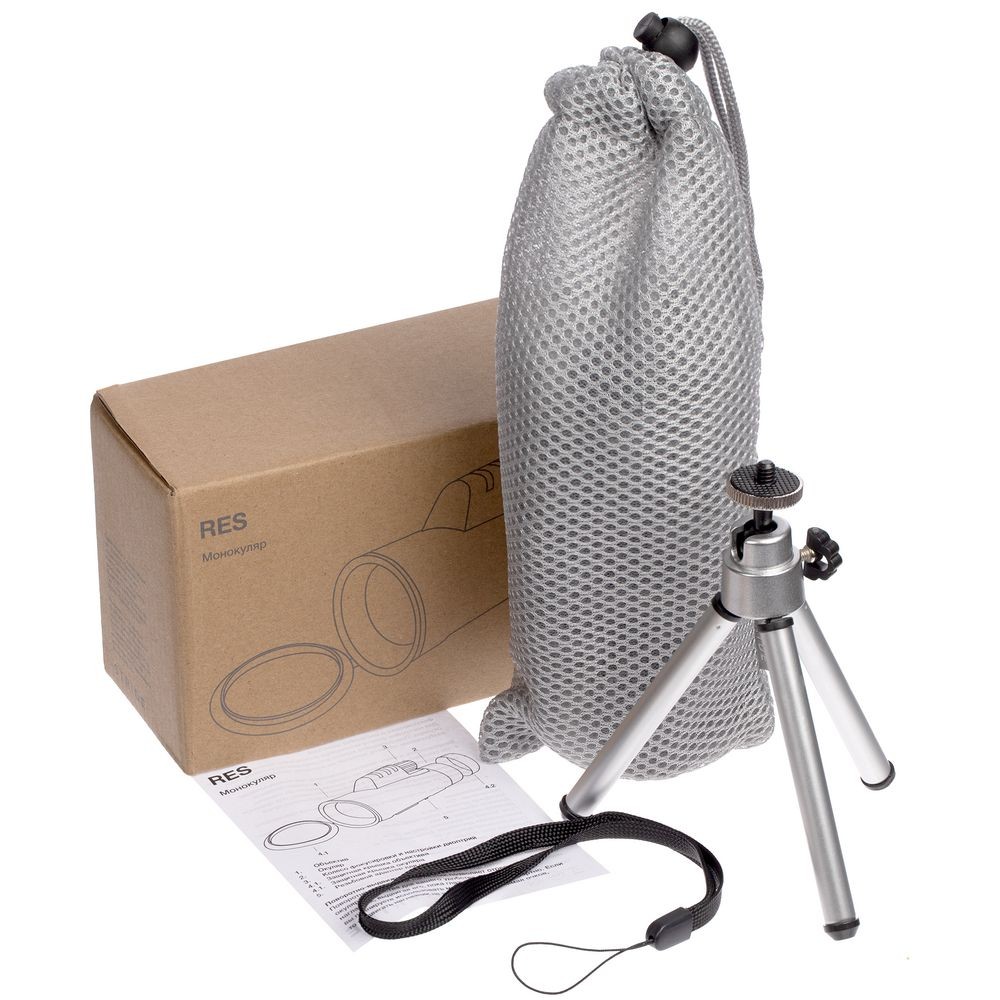 В комплекте: салфетка для оптики, штатив, ремешок, тканевый мешок.
