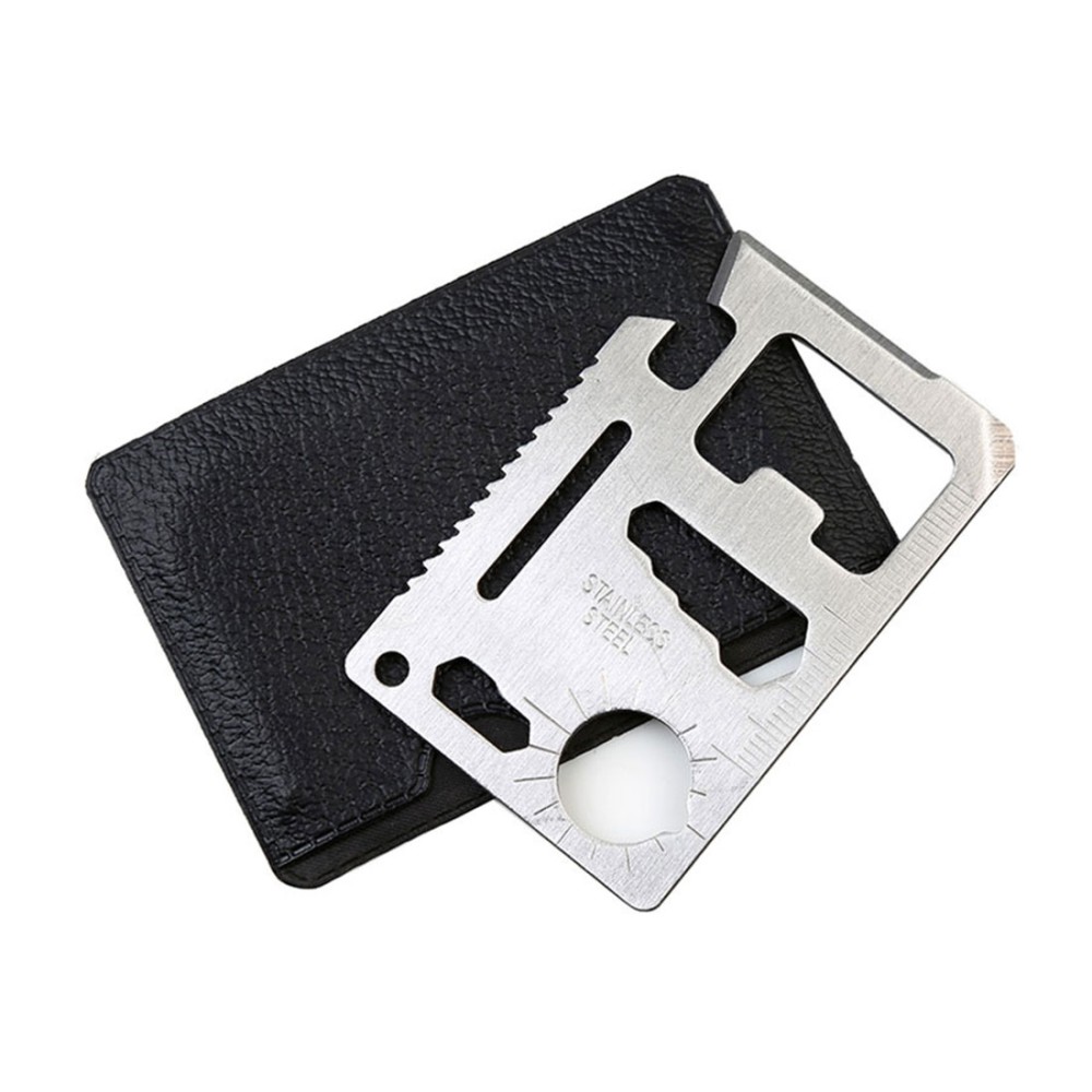 Мультиинструмент “Гайдельберг” – весь необходимый функционал в одной металлической “пластине” размером с кредитную карту. В комплект входят защитный чехол и идентификационная карточка инструмента. Небольшой инструмент для выживания – необходимая вещь, которую можно использовать в экстренных ситуациях. Мультиинструмент изготовлен из высококачественной нержавеющей стали, поэтому он не изгибается, не ломается и не ржавеет. Мультиинструмент “Гайдельберг” включает в себя следующие функции: - Консервный нож - Нож - Плоская отвертка - Линейка с метрической разметкой - Открывалка для бутылок - Гаечный ключ (4 размера) - Ключ для барашкового винта - Пила - Указатель направления, транспортир - Гаечный ключ (2 размера) - Отверстие для сгибания проволоки или для крепления шнура.