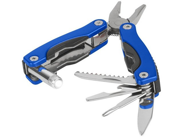 Мультиинструмент с диодным фонариком. В комплекте нейлоновый чехол с петелькой для крепления и застежкой на липучке. Батарейки в комплекте. - плоскогубцы - фонарик - пила - нож универсальный - плоская отвертка - крестовая отвертка - открывашка для банок/бутылок