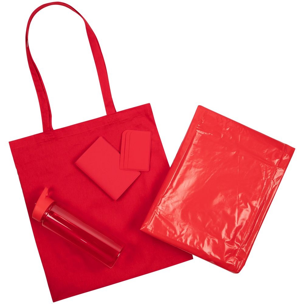 Материал: обложка для паспорта, чехол для карточек - искусственная кожа; бутылка - пластик; сумка - хлопок 100%, плотность 105 г/м²; дождевик - полиэтилен