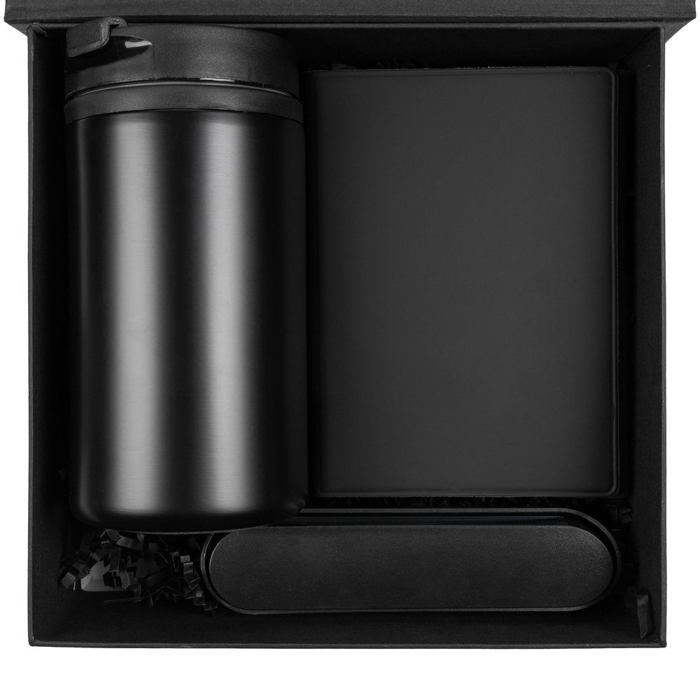 Материал: коробка - переплетный картон; термостакан - пластик, нержавеющая сталь; визитка - пластик; обложка для автодокументов - искусственная кожа