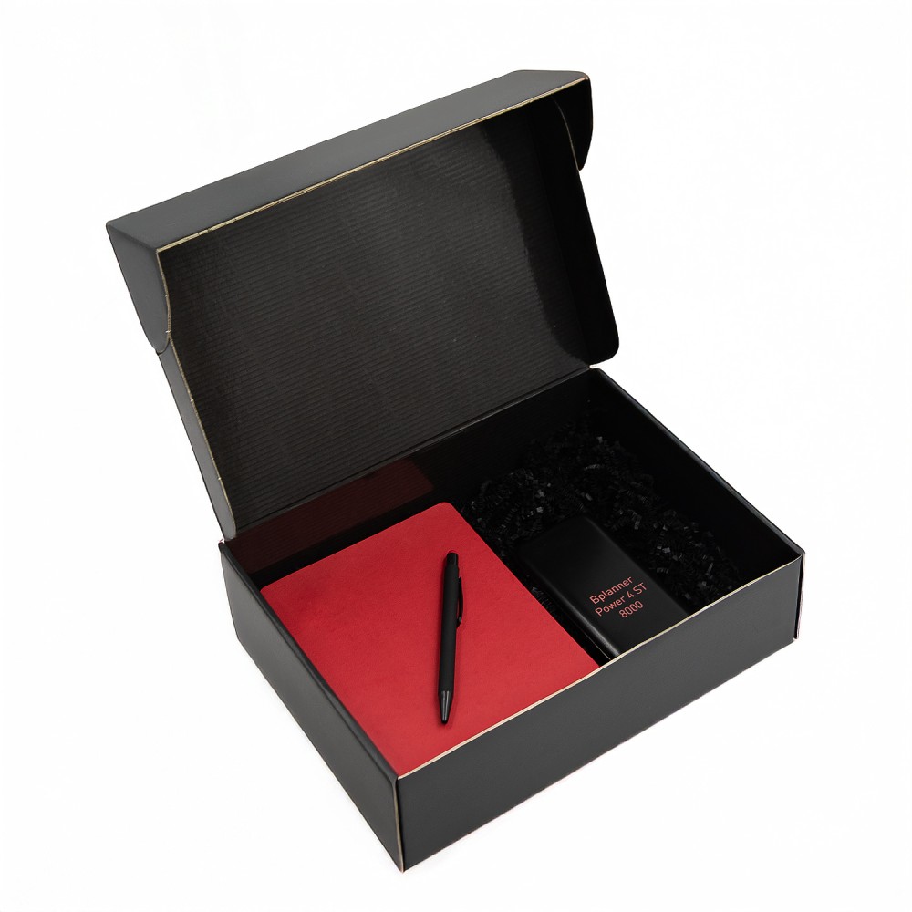 Коробка Hot Box с матовой ламинацией и бумажной стружкой - прекрасное решение для упаковки наборов: много вариантов для комбинации предметов.