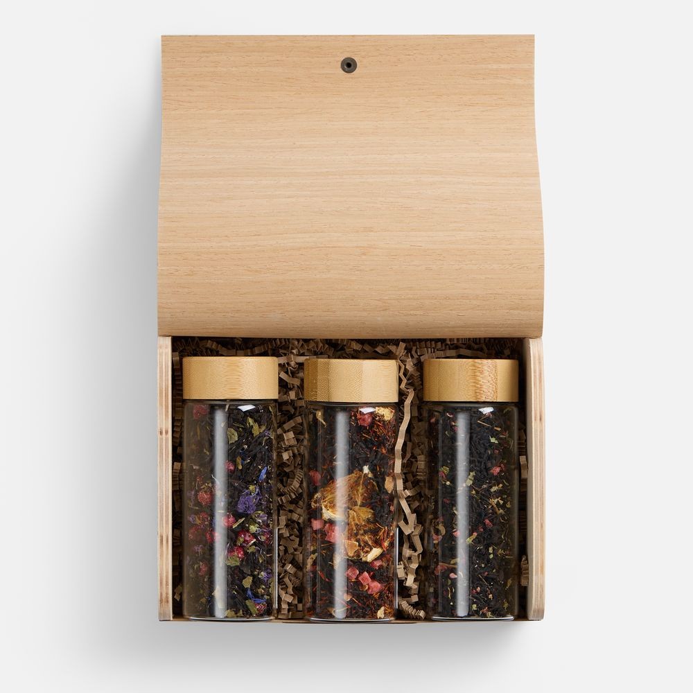Мягкие древесные оттенки «Подмосковных вечеров», яркая фруктовая насыщенность «Кенийского королевского» и сладковато‑травяной букет «Малины с медом и чабрецом» создают гармоничную вкусовую композицию.В комплект входят:
