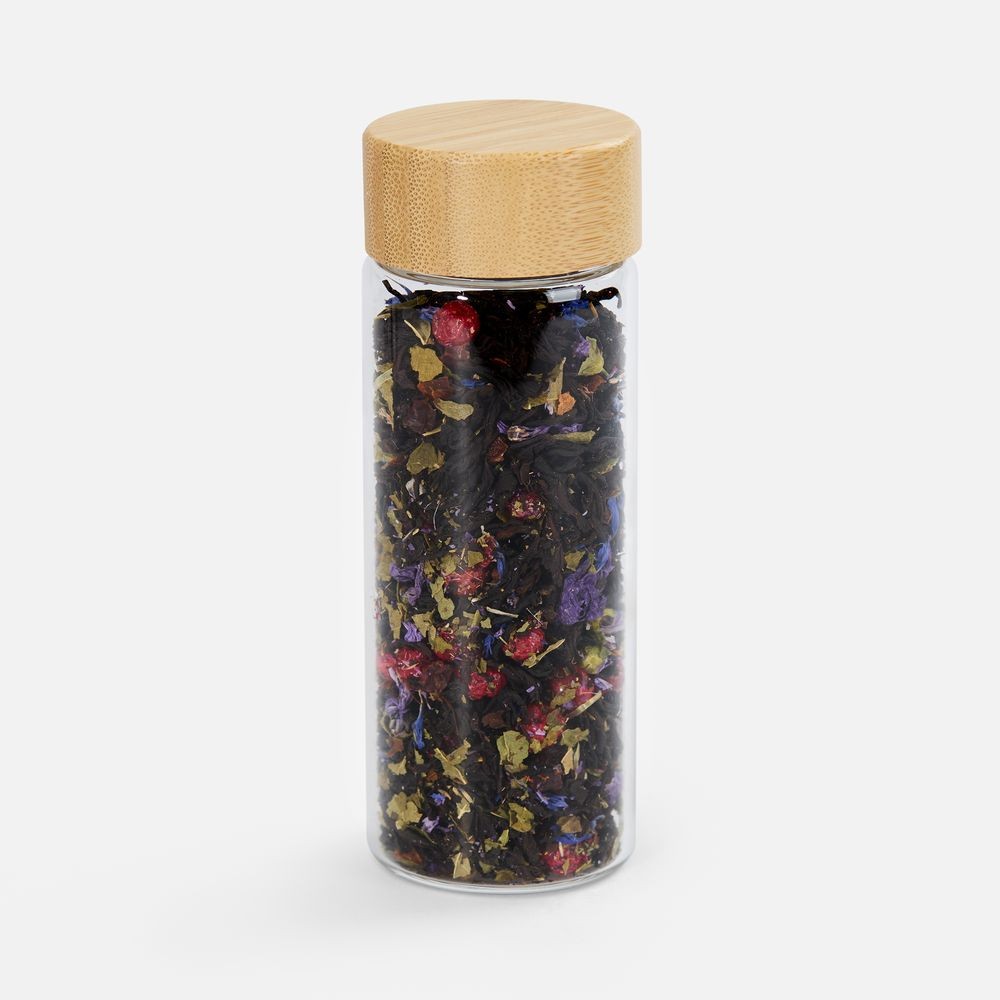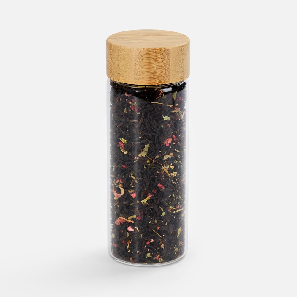 Вес нетто: 40 г - Чай черный «Малина с медом и чабрецом»Состав: чай черный индийский листовой, малина сублимированная кусочки, листья ежевики, цветы липы, чабрец, ароматизатор «малина», ароматизатор «мед»